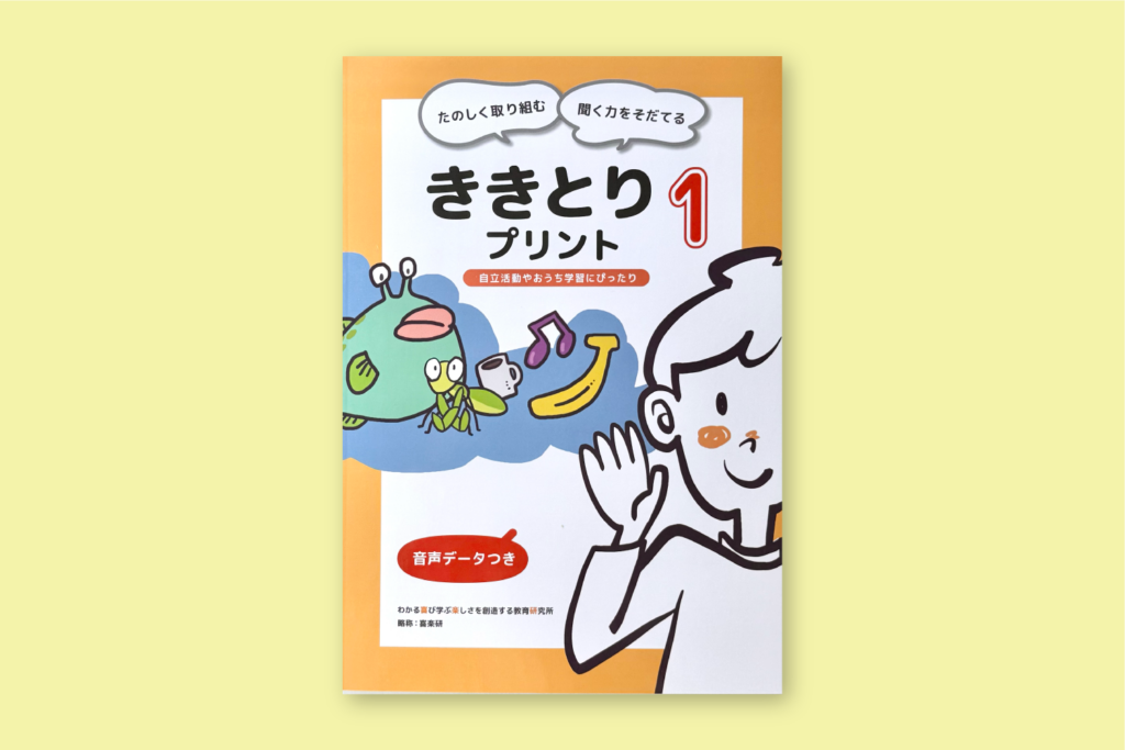 特別支援学級で使われることを想定した書籍です。「ド」と「ロ」、「デ」と「レ」など、聞き取りにくい言葉を音声データを使いながら解いていくワークシート集。
